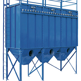 含塵氣體由進(jìn)氣口進(jìn)入灰斗或通過(guò)敞開(kāi)法蘭口進(jìn)入濾袋室,含塵氣體透過(guò)濾袋過(guò)濾為凈氣進(jìn)入凈氣室,再經(jīng)凈氣室排氣口,由風(fēng)機(jī)排走。粉塵積附再